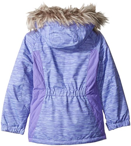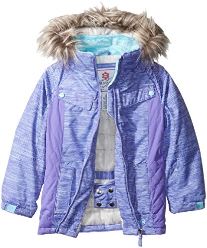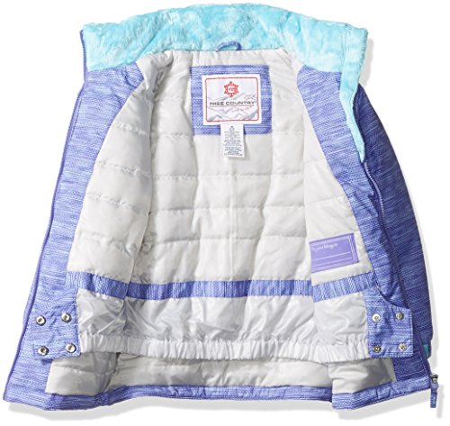 Free Country snowboard jacket featuring a fun, chic print and cool color blocking will make her warm and happy. Outer shell is signature Free Country radiance fabric that is both water/wind resistant and lightweight. A detachable faux fur trim hood, adjustable cuffs, snow skirt, butter pile fleece lined collar and multiple pockets round out the exceptional features of this coat.Feature