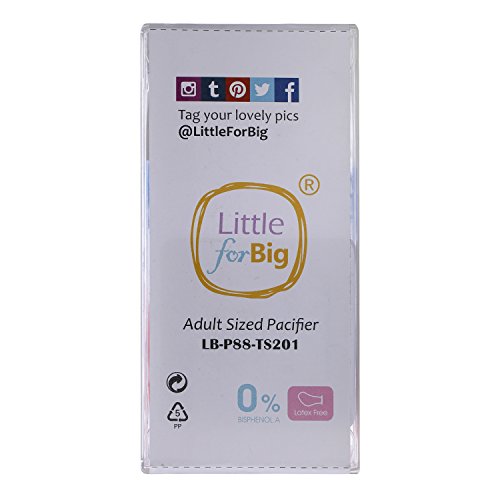 -. Feature : ADULT SIZED TEAT AND EXTRA LARGE SHIELD. Teat Size: 2 inch Long x 1.2 inch Wide; Pacifier Shield Size: 2.6 inch Wide x 1.9 inch Tall / HIGH QUALITY, SOFT & NATURAL. Specially designed, fits the mouth to give a natural feeling. Silicon nipple. BPA, and latex free. / MIXMATCHING FUN. Shield, button, handle and nipple can be taken apart and re-assembled to mix-match with other BigShield Gen2 pacifiers. / CALMS AND SATISFIES THE SUCKING URGE. It is just natural to use a high quality adult sized pacifier to satisfy this urge. / REDUCES SNORING or completely eliminates it. Allows entering a deep and peaceful sleep.