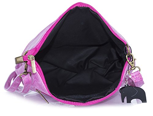 Soft genuine Italian shiny suede leather mini cross body shoulder bag