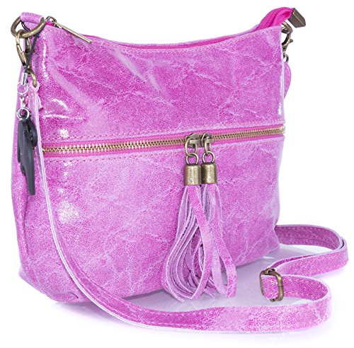 Big Handbag Shop Womens Genuine Leather Front Pocket Long Tassel Puller Bag