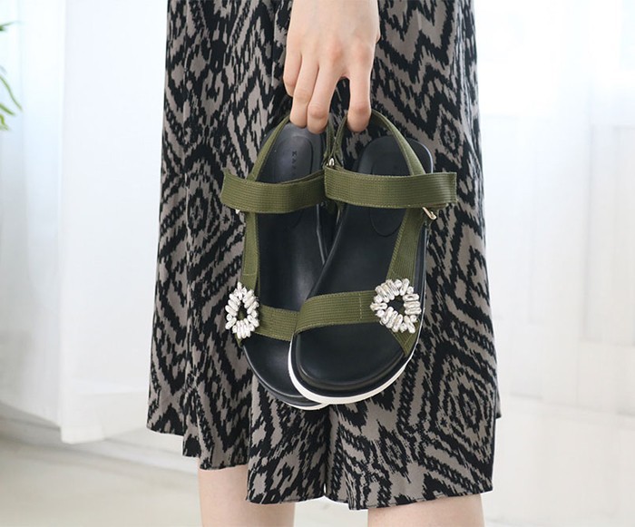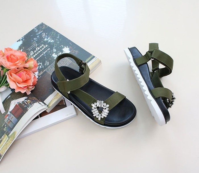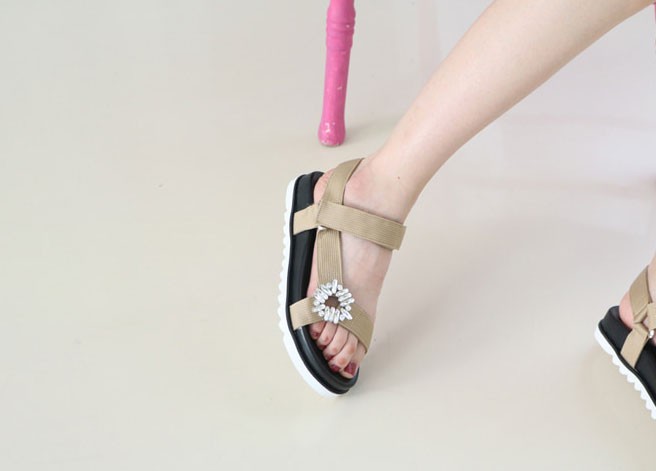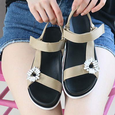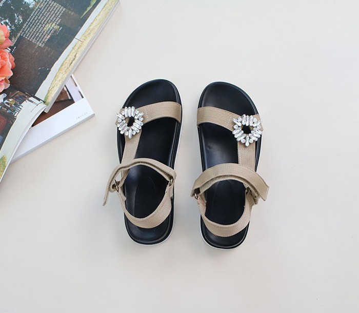 商品名:サンダル レディース ペタンコ ビジュー ベルトサンダル クロスストラップ 2018 春 ファッション 靴 婦人靴