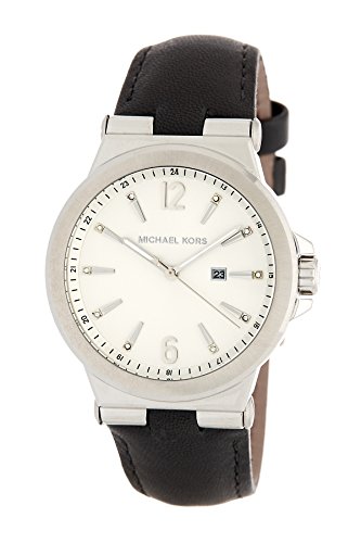 -. Title : Silver-Tone Black Leather Watch