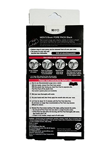 -. Binding : Misc. -. Brand : Bioré -. Feature : Throughly removes blackheads in 10-15 minutes / Removes dead skin cells, dirt and sebum that clog pore and cause blackheads! / Pore tightening formulation with witch hazel, so pores become less noticeable. Regular use reduces pore size. / Use 1 to 2 times weekly for cleaner, smoother skin / The Original Made in Japan Kao Biore Pore Pack -. Label : Kao Corporation -. Manufacturer : Kao Corporation -. NumberOfItems : 1 -. PackageQuantity : 10 -. ProductGroup : Beauty -. ProductTypeName : BEAUTY -. Publisher : Kao Corporation -. Studio : Kao Corporation -. Title : Biore Nose Strips