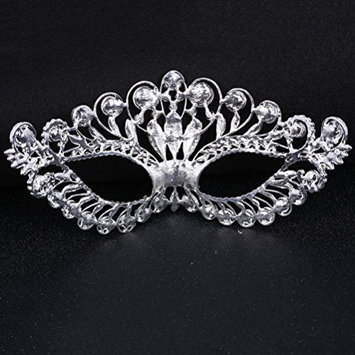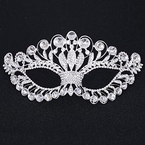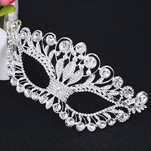 1 * Luxury Elegant Diamond Rhinestone Mask Masquerade Party Crown Alloy Mask for Women(Silver)