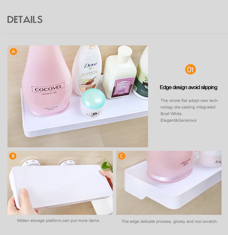BEEGAGA New Fashion Wall-Mounted Shampoo Storage Shelves Plastic White Rack Bathroom Organizers Bath Shelves