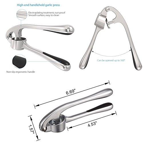 Garlic Press Stainless Steel Garlic Mincer Heavy Duty Professional Handheld Garlic Crusher for Home and Kitchen Dishwasher Safe