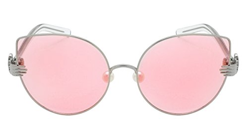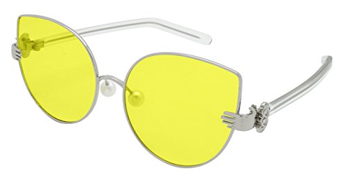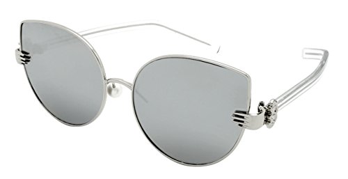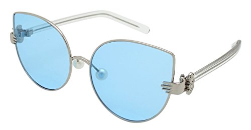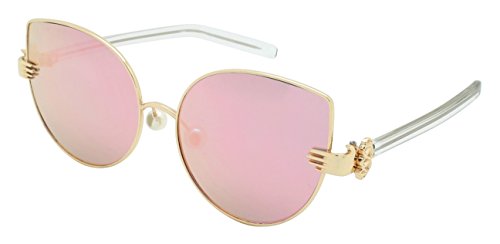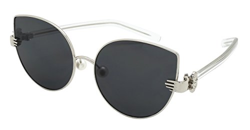 Product Description These Edge I-Wear super chic sunnies feature a unique combination of vintage glamour with modern style. The sophisticated metal cat eye frame is paired with a vintage style palm that joins the temple to the frame, faux pearl adjustable nose pads and transparent plastic adjustable temples. Finished with trendy flat clear UV 400 lenses which provide a modern look. Available in 6 different frame and lens colors. 0