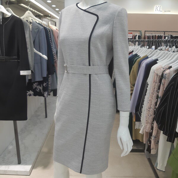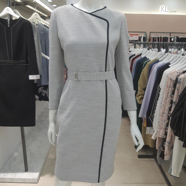 KL 배색 포인트 여성 원피스 [그레이/네이비]