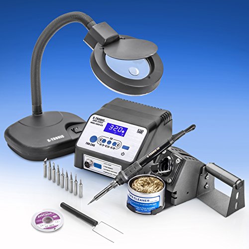 X-Tronic Model #8050-XTS - 70 Watt Commercial Grade ESD Safe 3 Preset Digital Display Soldering Iron Station - C/F - Sleep Function - Auto Shut Down - Solder Roll Holder, Brass Tip Cleaner w/Flux
