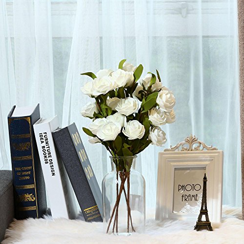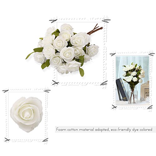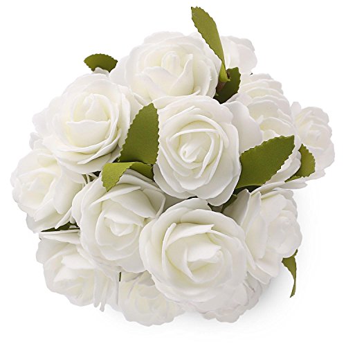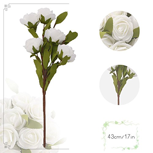 Foam Flower SOLEDI 6 Heads Roll Heart Artificial Roses For Bouquet DIY Wedding Arrangements Home Party Hotel Garden Decor -5 Bundles (White)