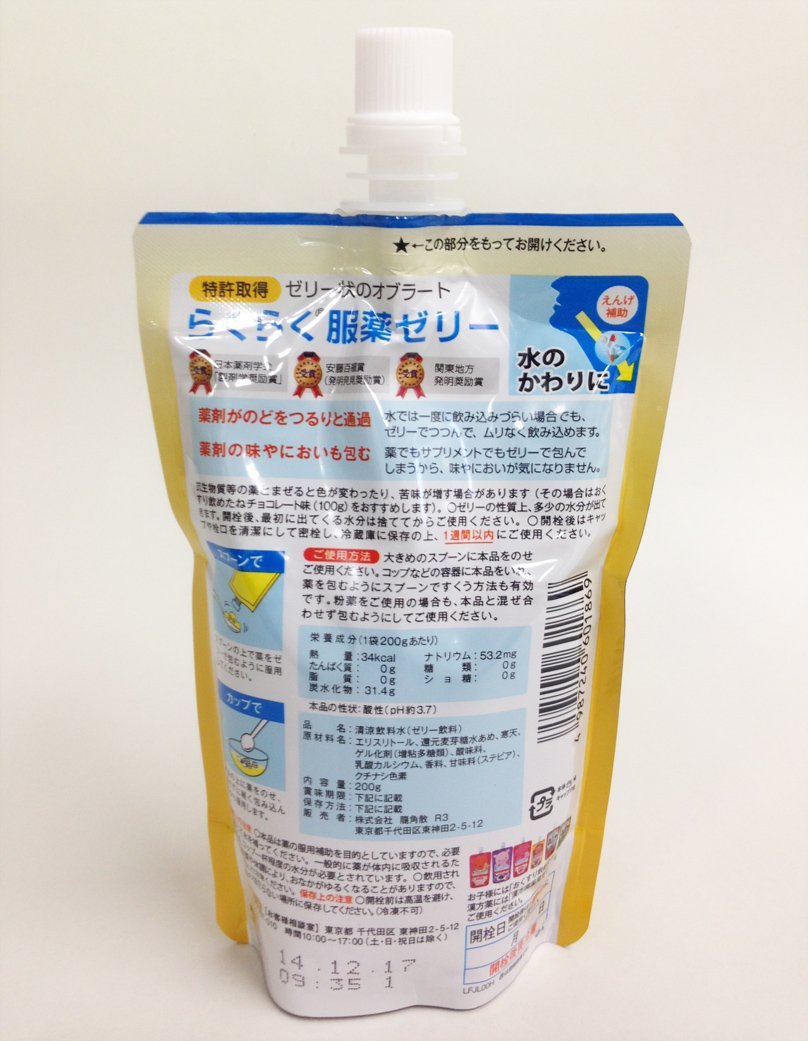 A jelly-like oblate that firmly guards the taste and smell of a medicine.