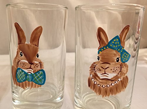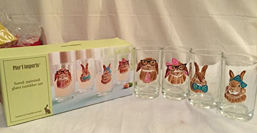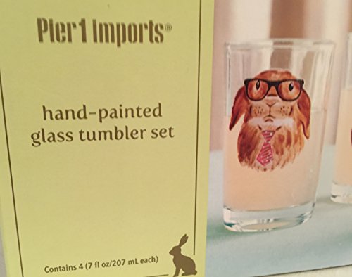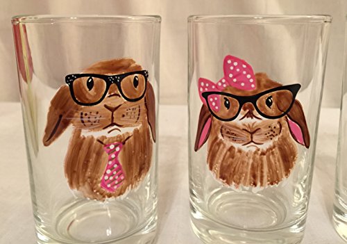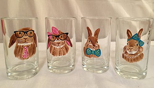 -. Title : 4pc ASSORTED BUNNY DESIGN COCKTAIL BEVERAGE GLASS CUP TUMBLER BARWARE 7oz