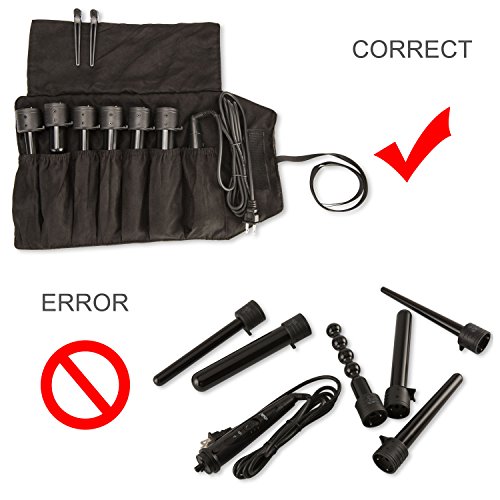 - CONVENIENT,EVEN ON TRIP: Free gift with 1 Heat resistant case and 2 Hair Clips. Heat resistant case come with the product is very convenient and useful, and also save your space when you on trip.(Cool them off to at least WARM before putting them in, as it is thin and will still transfer heat, or melt the cord from the base if too hot and touching a rod/wand).