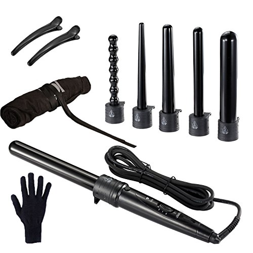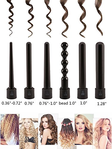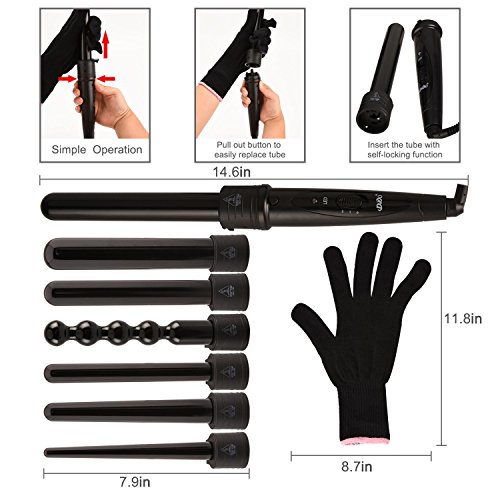 - INDIVIDUALITY HAIR STYLE: Your hair is unique and you need a professional curling iron that can be customized to your exact hair type. It comes with 6 piece interchangeable tourmaline ceramic ion barrels, meets your different curling style needs. Change your hair style from beech waves to tight curls yourself, enjoy the endless styling possibilities at home instead of hairdressing salon, save your money and precious time.