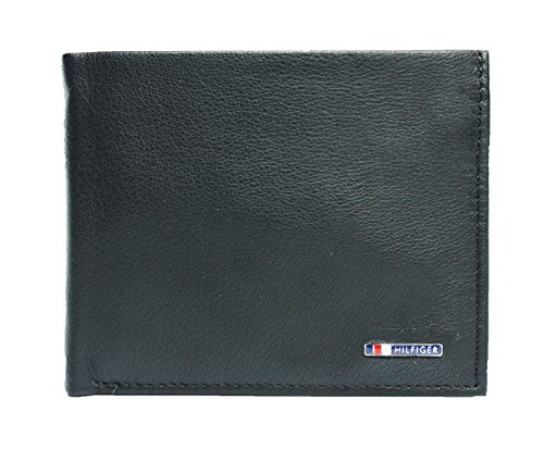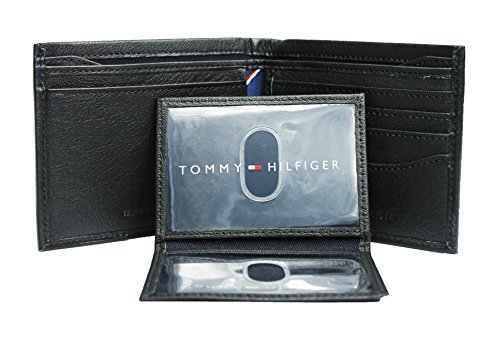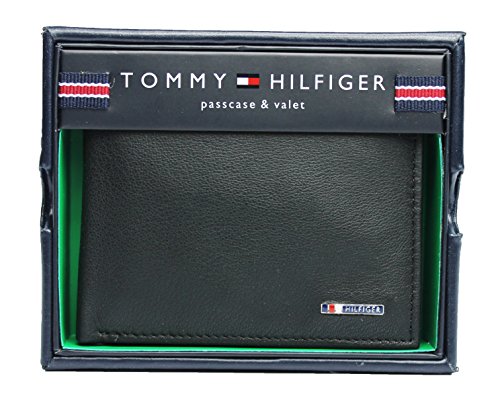 -. Title : New Tommy Hilfiger Men's Double Billfold Passcase Black Leather Wallet