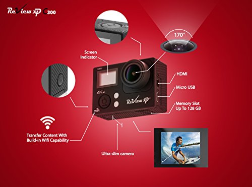VALUED BUNDLE COMBO - 4K Review XP C300 + Shockproof Carrying Case + 2.4g Wrist Wearable Remote Control + Waterproof case + 2 Batteries (1050 mAh) with an ample array of favorable accessories including Handle Bar, 7x Mounts, 2x Helmet Mounts, Bandages, Clips, Tethers, Velcro Straps, Charger Adopter, USB Cable, Lens Cloth, User Manual - All of these accessories are compatible with Go Pro cameras.