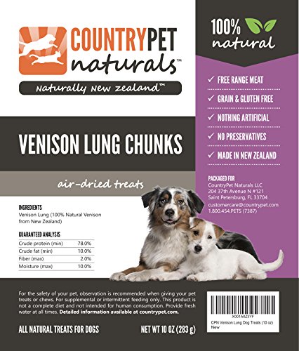 -. Title : Venison Lung Treats for Dogs by CountryPet Naturals (Large Bag, 10 Ounces) - Air Dried, Healthy Snack and Training Reward - 100% Natural, Grain and Gluten Free, Single Ingredient - Made in New Zealand