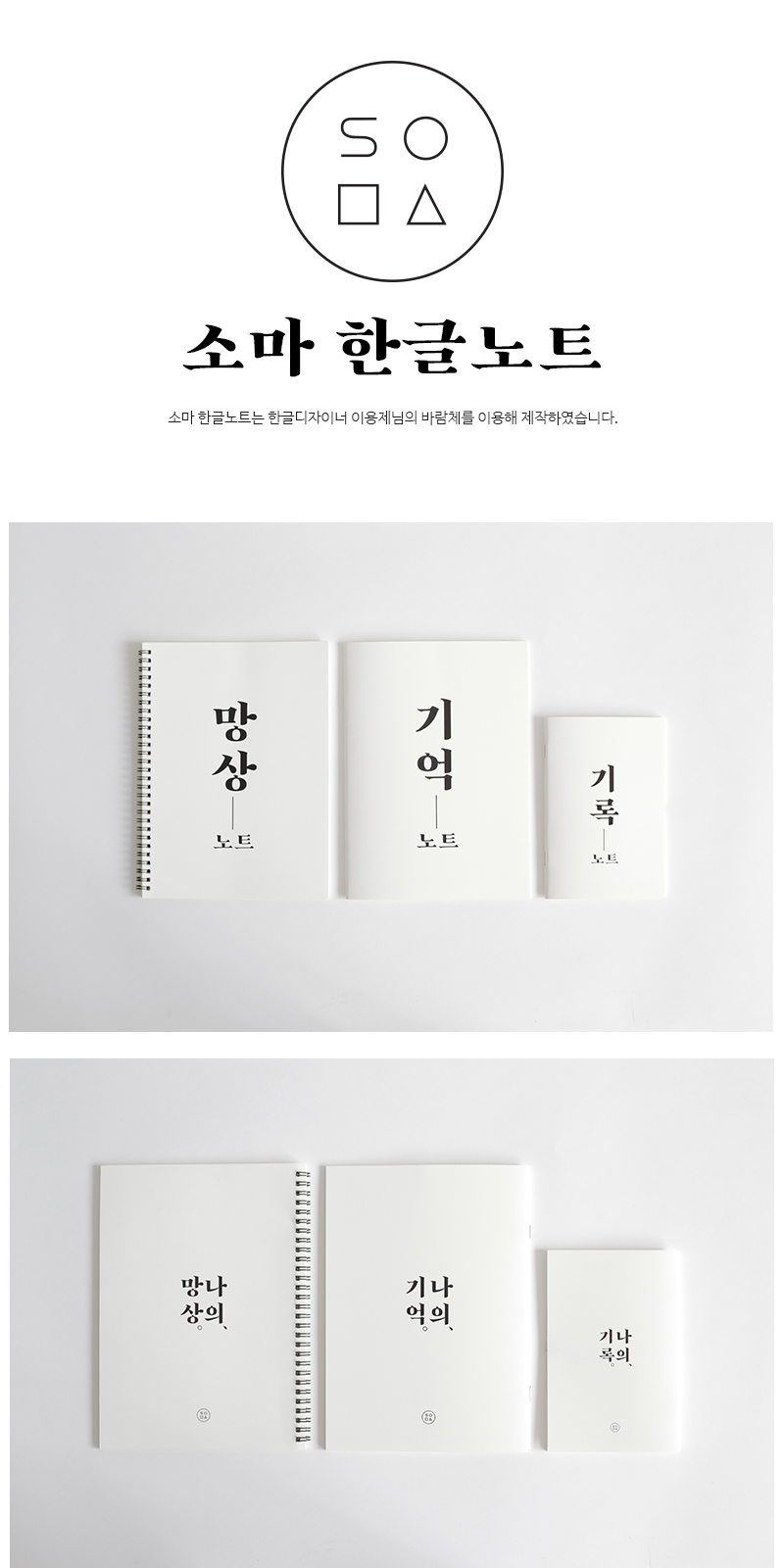 소마한글노트는 한글디자이너 이용제님의 바람체를 이용해 제작하였습니다.