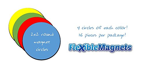 16-Pack Flexible Magnets in Assorted Colors. 2-Inch Diameter.