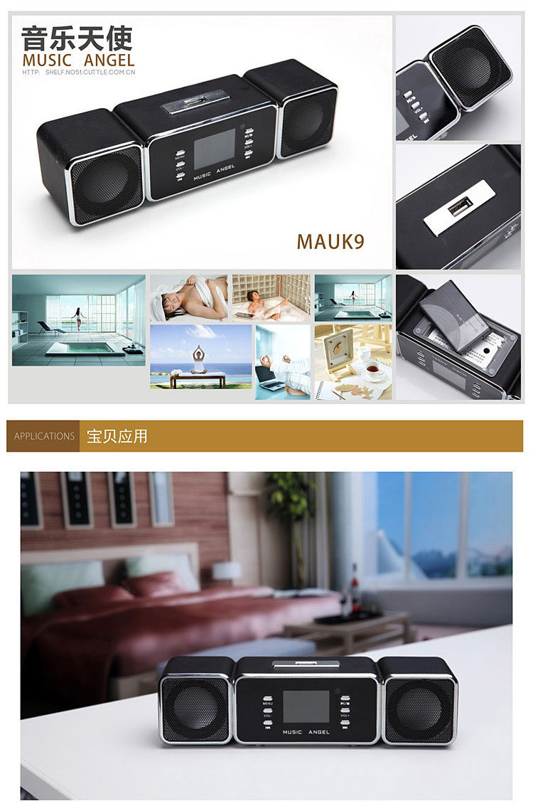 Music Angel Portable speaker/Digital Speaker/UK9 speaker built-in calendar with FM Support TF card/U disk/Phone