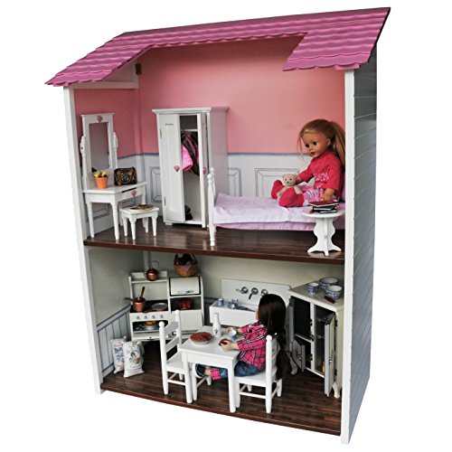 -. Feature : Innovative folding doll house design goes from flat to fabulous in minutes! Sized perfectly for 18" dolls and their furniture. / Sturdy wood construction with textured clapboard and tile exterior provides two roomy floors for 18" doll play. Furniture Not Included. / Sumptuous interior sports faux wood floors and walls with panel detail, ready to decorate with furniture and accessories scaled for 18" dolls. / Overall Measures 18" D X 56"H X 40"W overall. 1st floor is 25"H. 2nd floor is 30"H (Rear). Simple assembly by an adult. Dolls, furniture & accessories not included. / Exclusively made by The Queen's Treasures®, offering the highest quality 18" Doll Furniture, 18" Doll Clothes, 18" Doll Shoes & 18" Doll Accessories! Safety Tested!