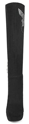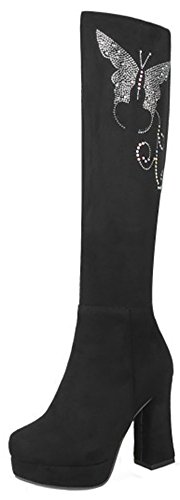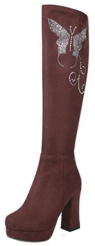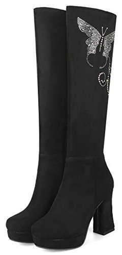 (Mofri)/Women's/Boots/DIRECT FROM USA/Mofri Women's Fashion Rhinestone Chunky High Heel Platform Round Toe Faux Suede Side Zipper Kne...