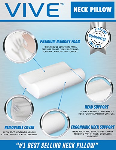 - Title : Memory Foam Contour Pillow by Vive - Best Orthopedic Support for Neck Pain Relief - Queen Size - Lifetime Guarantee