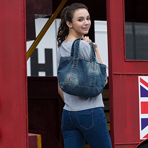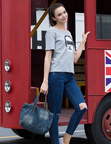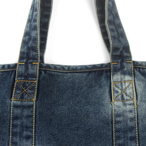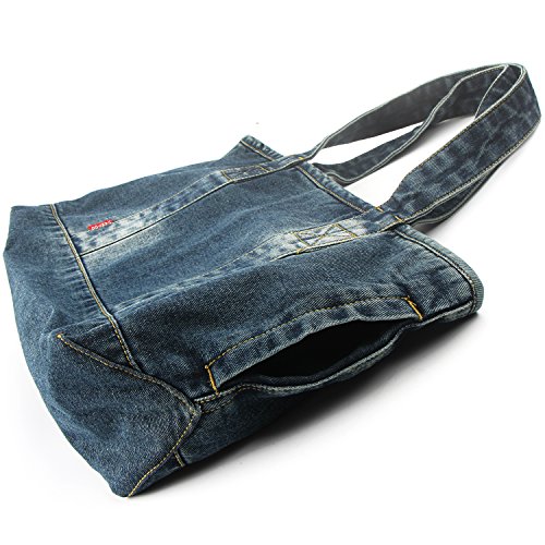 -. Title : Vantoo Distressed Unisex Denim Totes Handbag Shoulder Bag with Two Pockets for Men and Women,Blue