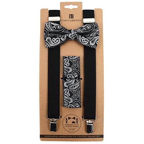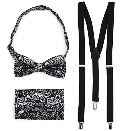 (TheDapperTie)/Accessories/Ties/DIRECT FROM USA/3pc Men's Black Banded Suspenders, Paisley Bow Tie and Hanky Sets