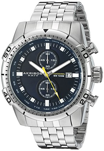 -. Title : Akribos XXIV Men's AK852SSBU Round Blue Dial Chronograph Quartz Staniless Steel Bracelet Watch
