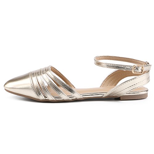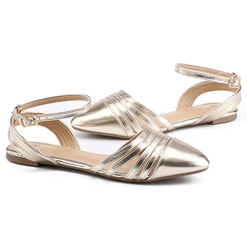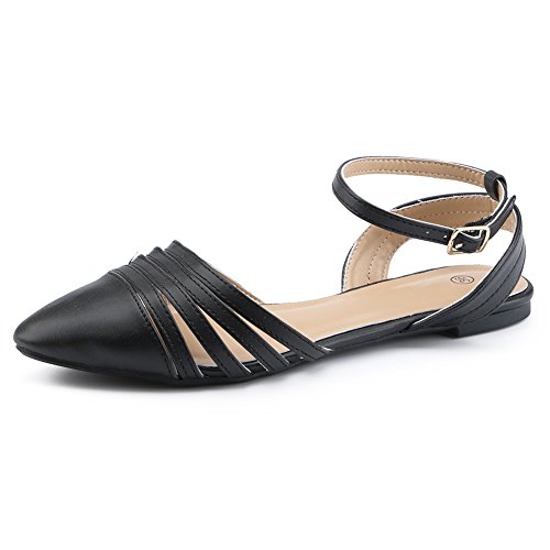(fereshte)/Women's/Sandals/DIRECT FROM USA/fereshte Women's Simple Pointed-Toe Hollow Out Flat Sandals Ankle Strap Buckle Casual Pumps Shoes