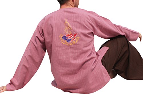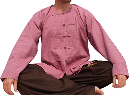 Raan Pah Muang RaanPahMuang Stripe Cotton Chinese Button Open Collar Handmade Pink Thai Lady God SZ L