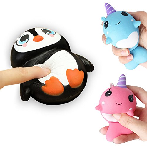 3.Quantity: 3 Pcs Dimension (4"). 1 Pink whale , 1 blue whale , 1 penguin. Children need to be supervised by adults while playing it!!