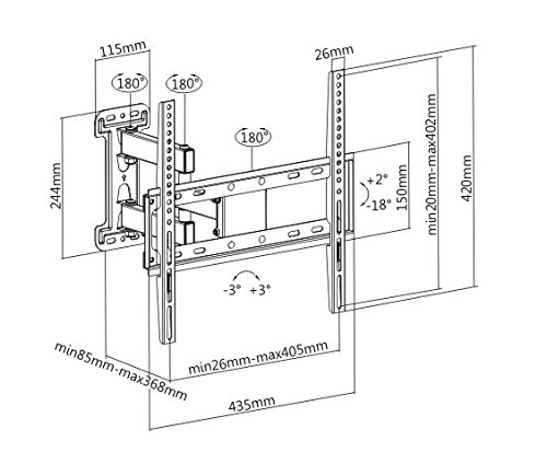 -. Binding : Electronics -. Brand : Husky Mounts -. EAN : 0646437731805 -. Feature : Heavy-duty steel construction Articulating TV wall mount carries up to 77 lbs and VESA mount compliant up 400X400 which means the distance between the mounting holes on the back of the TV CAN'T EXCEED 16" horizontally and vertically. Fits most 32 37 39 40 42 43 46 47 48 50 52 55 Inch LED LCD Flat Screen provided that the TV's weight and mounting pattern are within the limit specified above. Please don't depend on the screen size only. Determine your TV's weight and mounting pattern first. / Its mounting wall plate is 9"X 4" designed to mount on a single wood stud or it can be mounted on a concrete or brick wall. Lag bolts are included. Open space behind the TV when extended for easy cable access. Security locking mechanism to prevent the TV from unlatching off the wall. / Full Motion TV wall mount bracket tilts down for optimum viewing angle and to reduce glare. Swivels freely left and right allowing you to place the TV on any wall in the room and yet have a perfect viewing angle. Single arm extends up to 14 ½" and retracts back flat about 3" away from the wall. / Easy installation with instruction and all necessary hardware included. Lifetime warranty. Please reach out to us if you need any help at all. Our US based Husky Mounts customer service and technical support team is ready to help! / Four factors to consider before buying this HDTV wall mount; 1-The TV's weight can't exceed 77 lbs, 2-The distance between the mounting holes on the back of the TV should be 16" or less (VESA 400x400 or less) 3-The TV extends up to 14 1/2" from the wall which means the swivel angle will depend on the TV's size as a larger TV will touch the wall sooner when swiveled side by side. 4- If the cable plugs are located on the back of the TV, make sure they won't be blocked by the 17"X 6" front plate. -. Label : Husky Mounts -. Manufacturer : Husky Mounts -. ManufacturerPartsWarrantyDescription : Lifetime Warranty -. Model : FM-45LM -. MPN : FM-45LM -. PackageQuantity : 1 -. PartNumber : FM-45LM -. ProductGroup : Speakers -. ProductTypeName : AV_FURNITURE -. Publisher : Husky Mounts -. Studio : Husky Mounts -. Title : Husky Mounts for Most 32 - 55 Inch Full Motion TV Wall Mount Articulating Tilt Swivel Heavy Duty Corner Friendly Bracket. up to VESA 400x400 (16"x16") 77 Lbs Capacity -. UPC : 646437731805