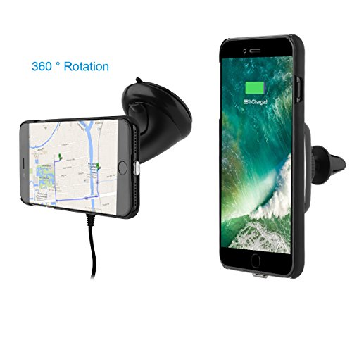Magnetic Wireless Charger Car Kit,QIVV Wireless Car Charging Dock,Mobile Cell Phone Air Vent / Windshield Vehicle Mount Holder Cradle With Wireless Charging Receiver Case For iPhone 7/6S/6plus(Qi)