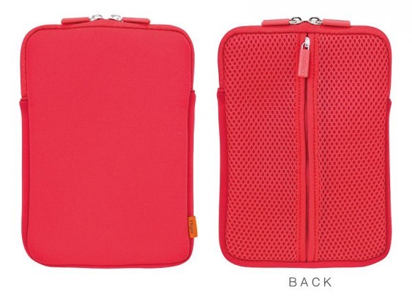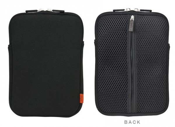 肌触りのよいネオプレーンを採用。ガジェット類などの小物を収納できる便利な背面メッシュポケット付きです。 |