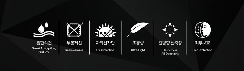 Sweat Absorption, Fast Dry / Seamlessness / UV Protection / Ultra-Light / Elasticity in All Directions / Skin Protection