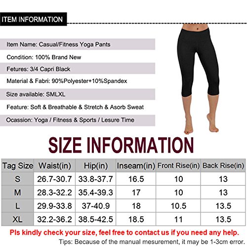 -. Title : CROSS1946 Sexy Women's Yoga Running Fitness Cropped Pants Flex Leggings Waistband Workout CaP.R.Is Black