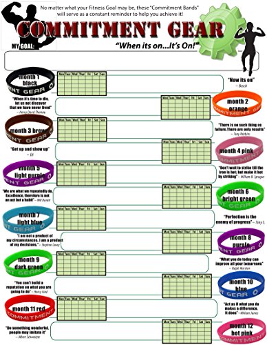 • Bands are printed in white,with the words COMMITMENT GEAR keep you focused on acheiving your goals