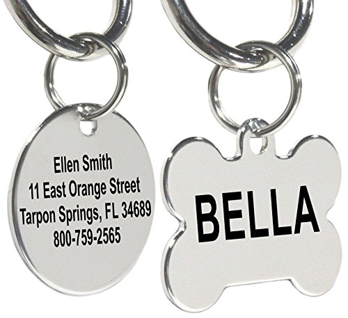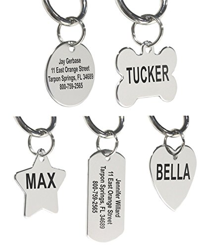 Product Description Rugged and durable stainless steel pet tags by Providence Engraving. Each tag is polished to a high luster and personalized with up to 4 lines of information on each side. These tags are easy to read and will outlast anodized aluminum alternatives. 0