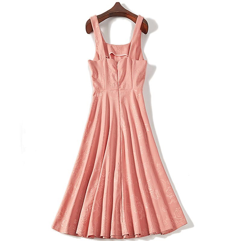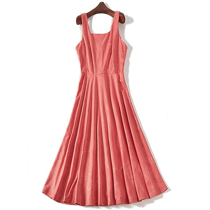 ローズ地模様のピンクとアプリコットカラーのシンプルなノースリーブワンピ♪