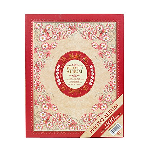 Ksmxos Frame Cover Wedding Photo Album 200 Pockets Hold 4.5x6 Photos (Red)