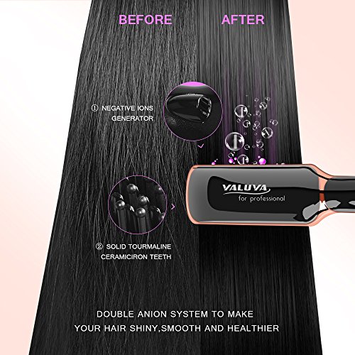 - 【GIVE YOUR HAIR THE BEST CARE】The heated straightening brush release rich negative ions which can eliminating frizz, split ends, knotting and adds shine, repairing the hair quality of harm. Compare to existing hair straighteners, YALUYA upgraded the hair-contacted material to avoid hair wrapping, fundermentally reduce hair loss and breakage.