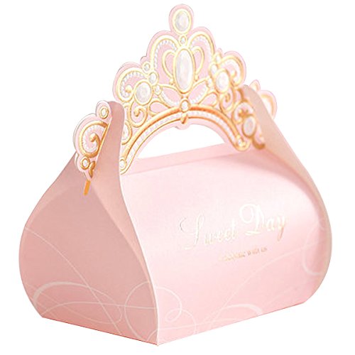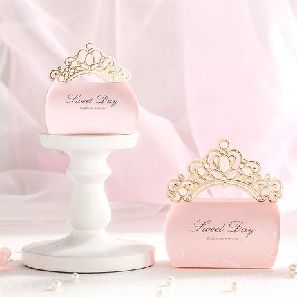 - In order to make the grain of the box be clear and make tailor more orderliness, we apply silk screen, laser and gold stamping multitudinous technology. Featured luxurious and graceful golden royal crown decorate the pink princess wedding gift box create a kind of gorgeous and noble wedding atmosphere. It only comes with the boxes. Candies or chocolates are not included.