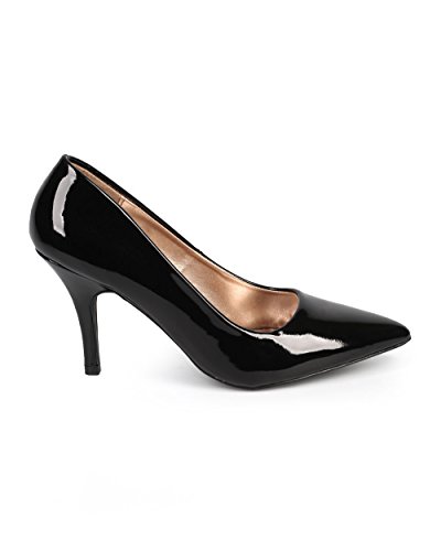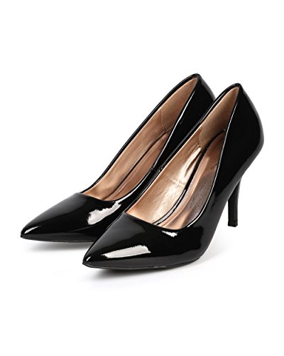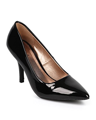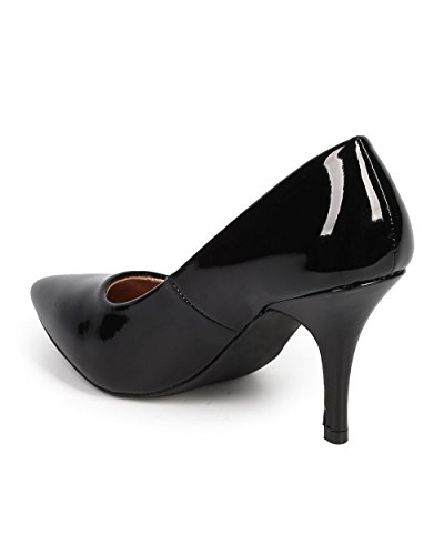 (Qupid)/Women's/Pumps/DIRECT FROM USA/Qupid DG39 Women Patent Pointy Toe Single Sole Kitten Heel Pump - Black