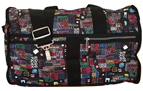 NYC Exclusive print - all things New York City NYC graphic featuring iconic NYC locations: Statue of Liberty, Brooklyn, SOHO, Wall Street, Astoria, Van Cortlandt Park, LaGuardia Airport, Battery Park, Harlem, East Village, etc... NY famous graphics featuring: NYC taxi cab, hot pretzels, Staten Island Ferry, Subway icons, Big Apple, etc... Colorful limited edition, hard to find LeSportsac NYC Empire State C Cr Large Weekender Great weekend getaway size Ideal carry-on Weightless micro ripstop material Innovative pewter metallic coated interior Aluminum hardware, sleek & chic Hand finished zipper in iconic logo shape New coil designed zipper glides effortlessly Style 2291/Color K339Feature