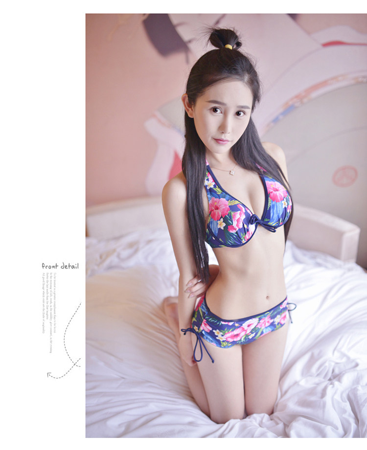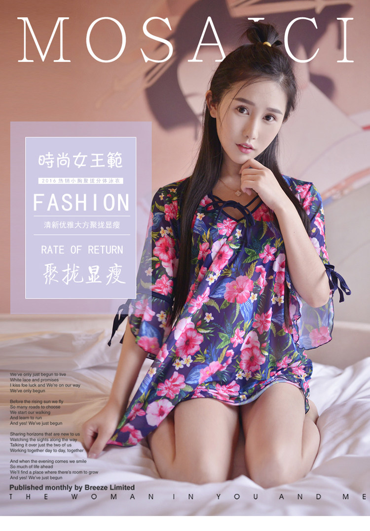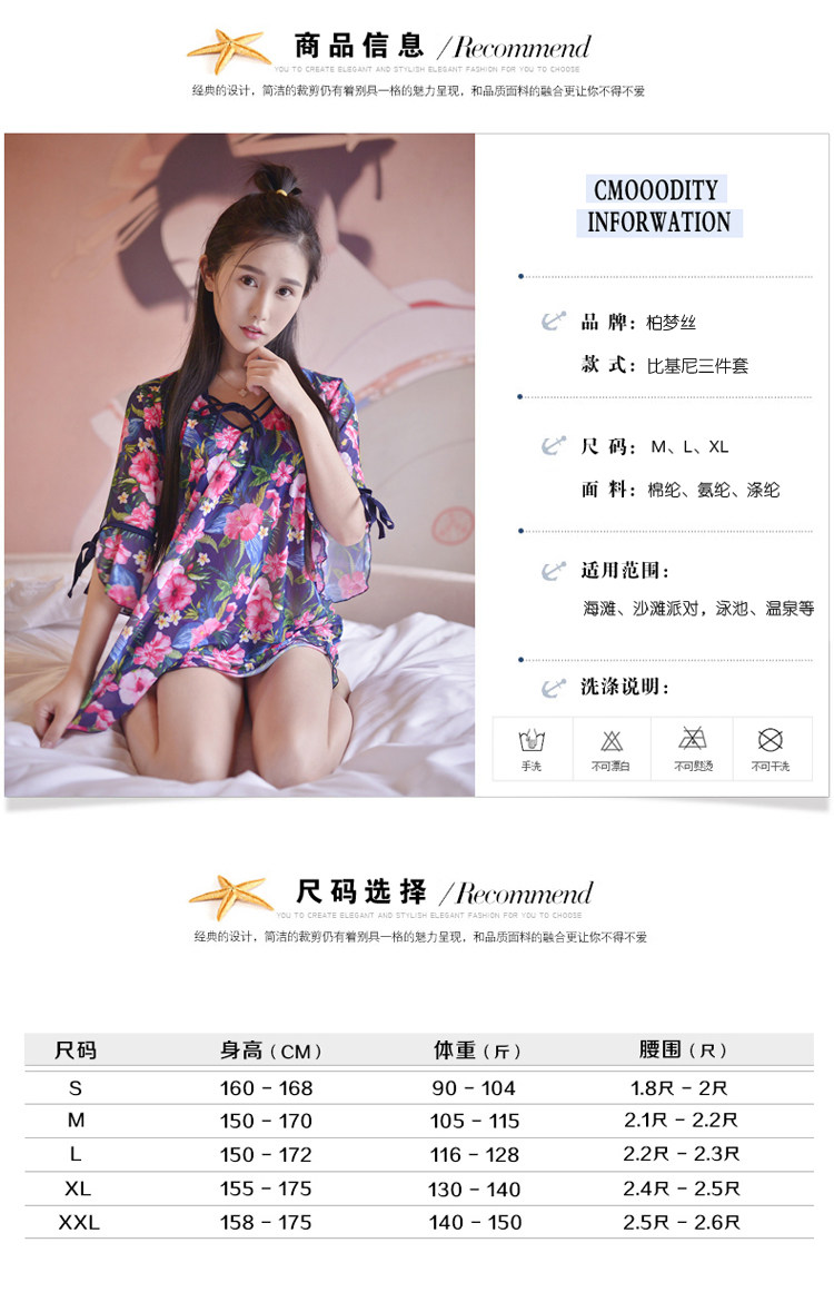 新款裙式比基尼泳衣女钢托聚拢遮肚显瘦比基尼三角三件套保守泳衣