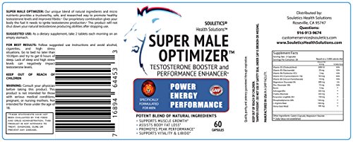 -. Feature : NATURAL BOOSTER ASHWAGANDHA - Natural ingredients to support men's health and sports nutrition. Contains the most potent, biologically active micro nutrients on the market today. The natural ingredients we include are Ashwagandha (Indian Ginseng), Eurycoma Longifolia (Tongkat Ali or pasak bumi), Phosphatidylserine, L-Arginine, Horny Goat Weed (Epimedium, Barrenwort), and Choline Bitartrate. Ashwagandha is an adaptogen and one of the most popular herbs for men. / MICRO NUTRIENT BLEND MULTIVITAMIN - An estimated 75% of Americans suffer from nutrient deficiencies. Includes Choline, B3, B5, B6, B12, D3, magnesium, zinc and boron. Studies show proper vitamin supplementation combined with exercise results in numerous health benefits. / MALE PERFORMANCE - We don't hide behind a proP.R.Ietary blend or crazy claims about a natural Viagra for men, but rather we tell you exactly what you're getting and why. SUPER MALE OPTIMIZER is made in the USA in safe FDA & GMP registered & certified facilities. No fillers! Every batch is 3rd party tested for quality. / BODYBUILDING & SPORTS NUTRITION SUPPLEMENT - Can be used as a great athletic training supplement. If you want to build muscle mass and experience the gains you desire you must make the lifestyle changes as well as get the micro nutrients and herbal supplements to fuel you. Building your body is easy when you have proper supplementation. This is a high quality product, and a must-have supplement for men. / 100% SATISFACTION GUARANTEED - If there are any issues we will refund you and send a new product. Combat aging, gain endurance, and energy. Due to environmental toxins, many are experiencing accelerated aging, fatigue, reduced muscle mass and mild depression. The good news is with lifestyle changes and proper supplementation you can have optimal health.