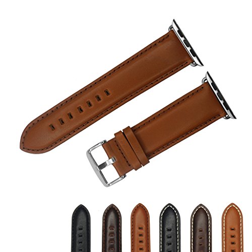 -. Feature : Classic Design -- This leather watch band with a decent look fits well with both business and casual occasions; It is never out of fashion. / Premium Craftsmanship -- Made of 3 layers include surface leather, thickening shape layer and bottom layer; Uniform stitching color with the band makes it feel more elegant. / Comfortable leather bottom -- Chosen the nubuck calfskin leather, More comfortable. / Choice of Color & Width -- Black,Light Brown;38mm,42mm / Choice of Adapter Color -- Black