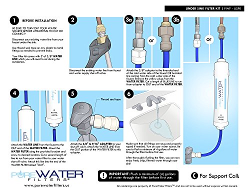 PureWater Filters® Under Sink Water Filter Kit Includes: - PureWater Filters® Inline Water Filter with 3/8" Leak Proof Quick-Connect Fittings